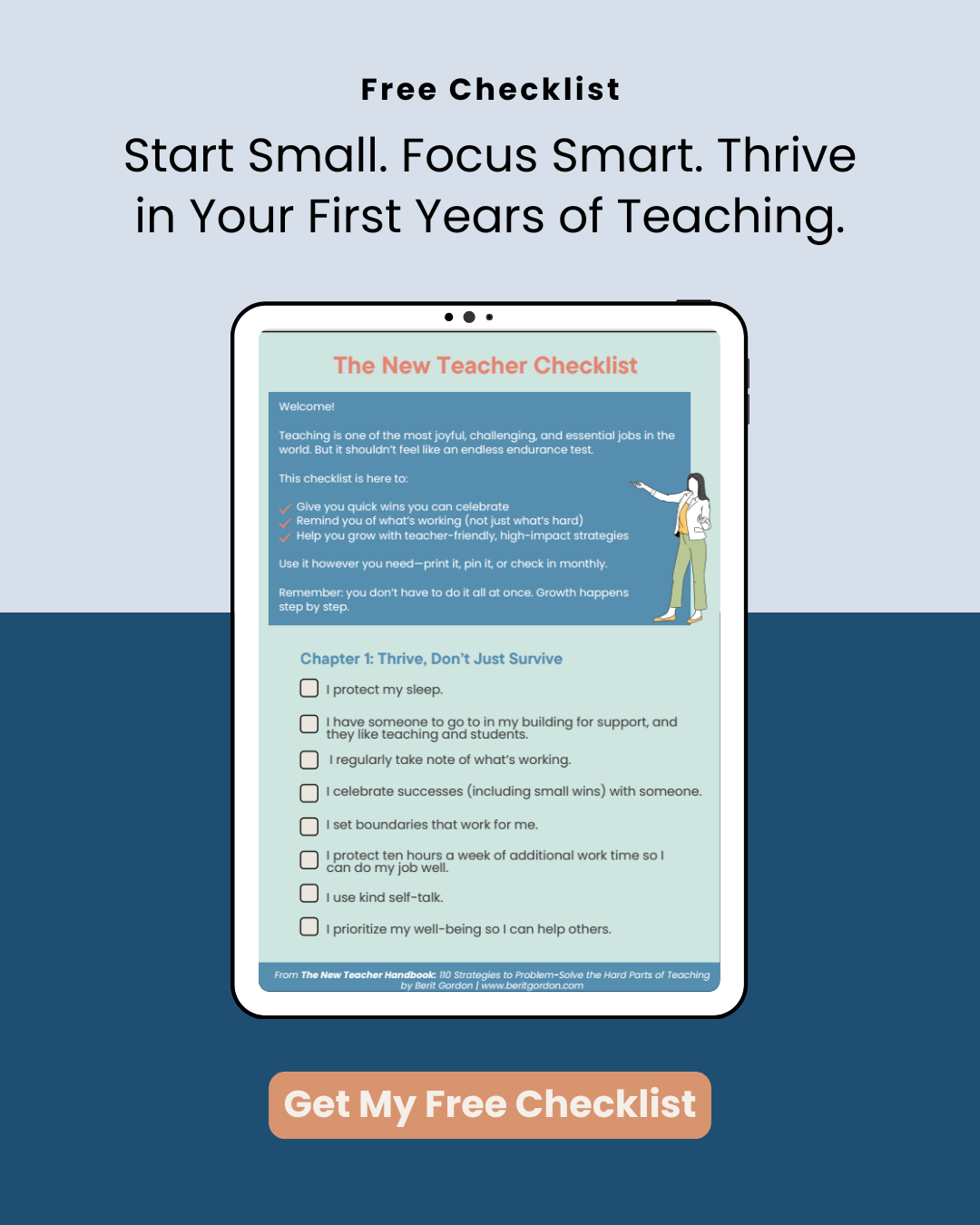 The New Teacher Checklist helps you find your “just right” goal so you can build confidence, celebrate progress, and focus on what matters most.