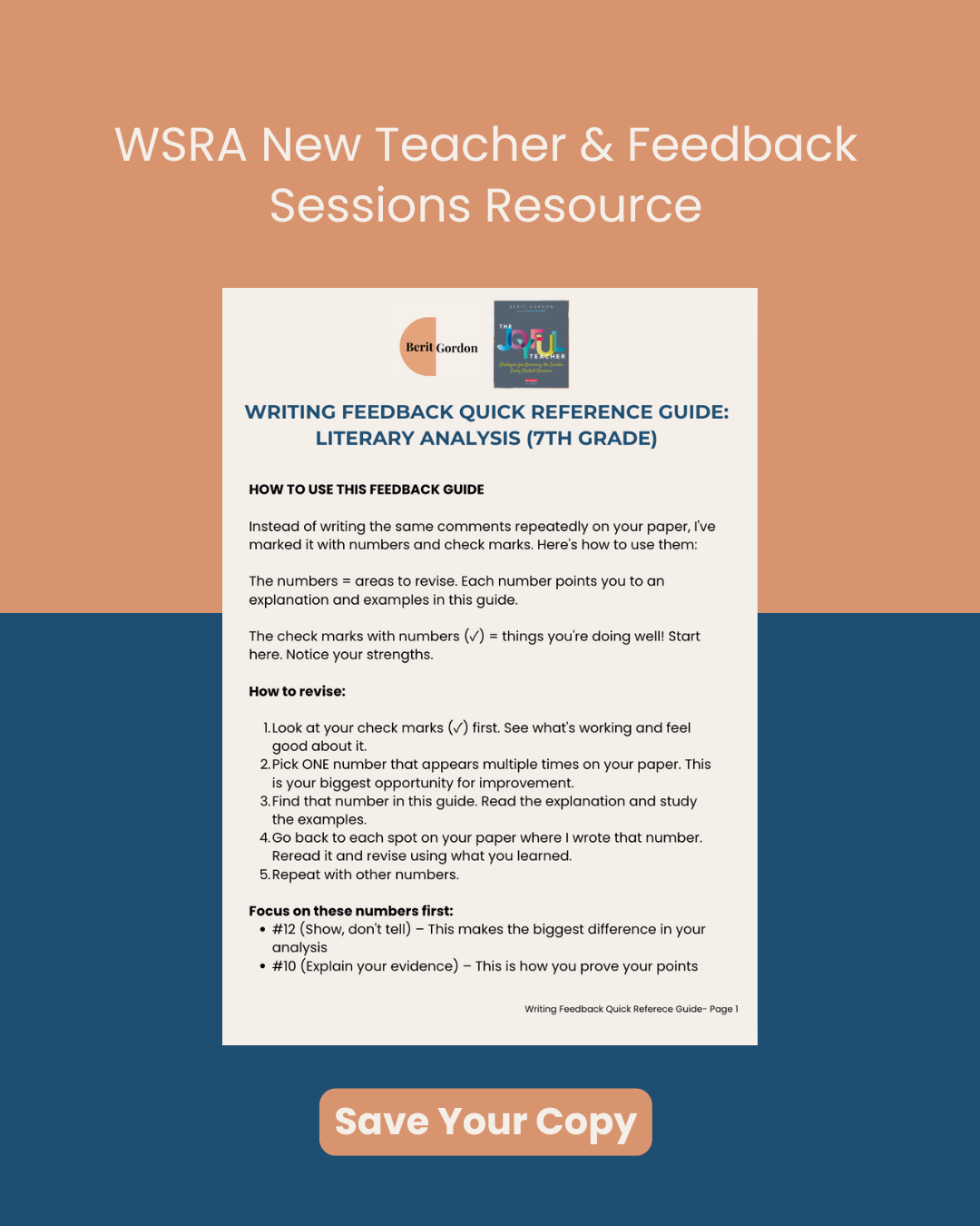 Inside, you’ll find quick wins for new teachers, a writing feedback quick reference guide, and a student feedback survey to help strengthen instruction, save time, and support long-term growth.